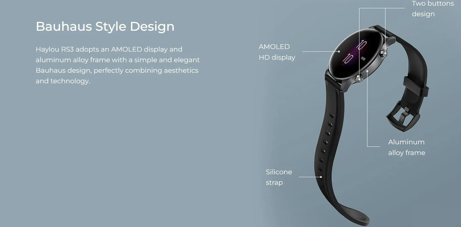 The Haylou RS3 features a 1.2-inch AMOLED display.