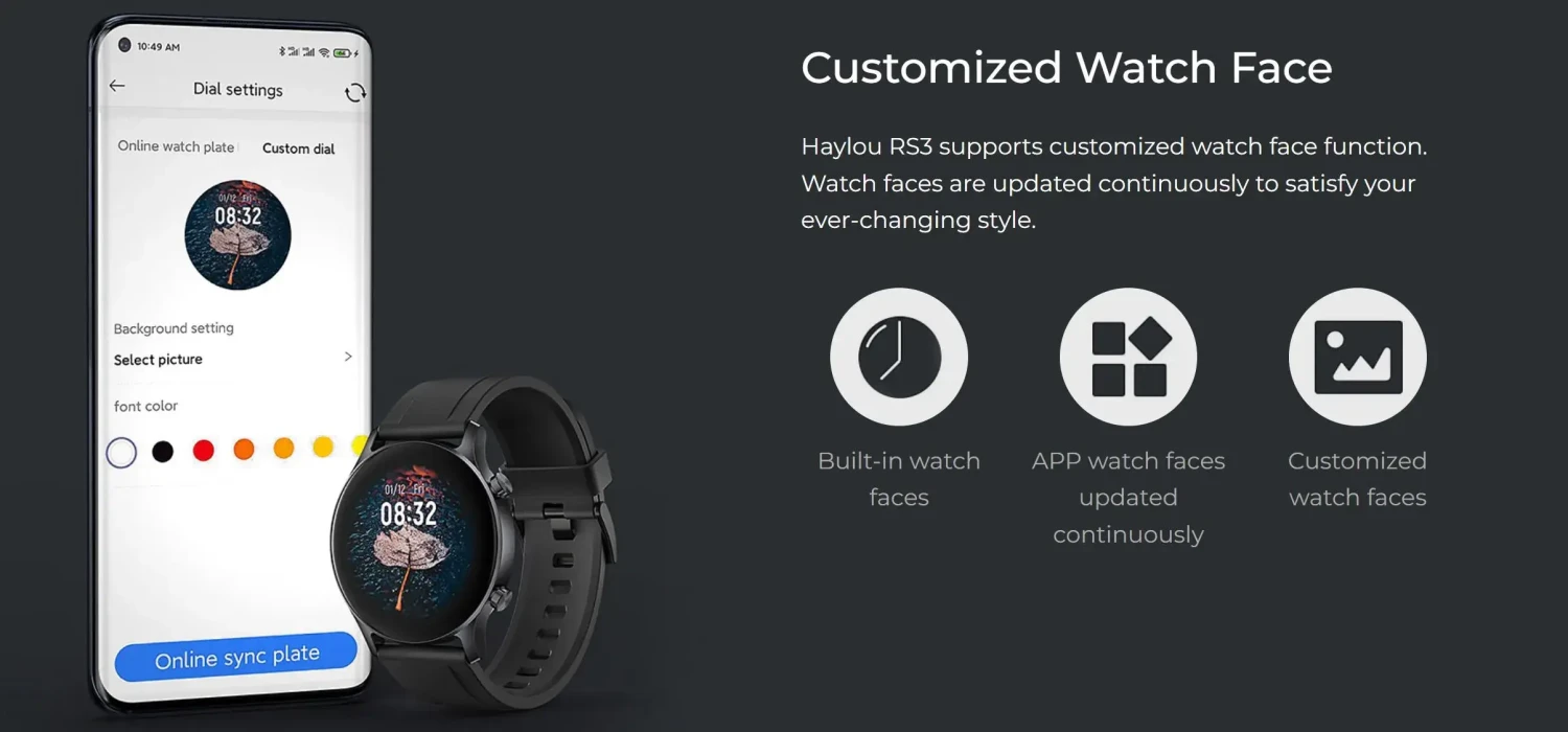 Specifications for the Haylou RS3 LS04 smartwatch::